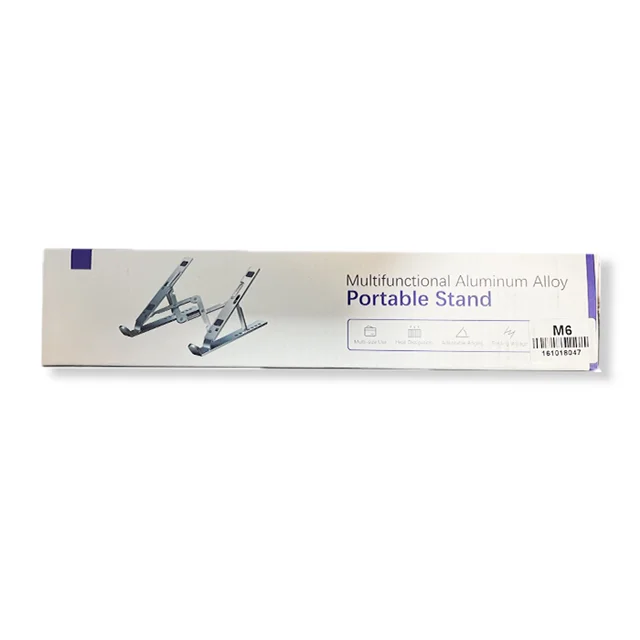 لپتاپها از کالاهای دیجیتال گران بوده و نگهداری و استفاده درست از آنها اهمیت بالایی دارد. پایه نگهدارنده لپ تاپ مدل M6 مکمل خوبی برای لپتاپ شما است و از آن به بهترین شکل ممکن حفاظت میکند. این محصول 360 گرم وزن داشته و جنس بدنه آن از آلومینیوم است.