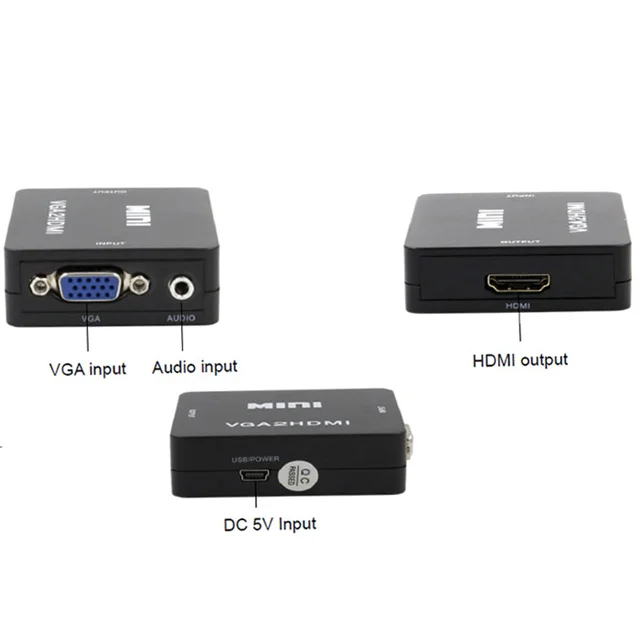 ورودی VGA نری | خروجی HDMI مادگی | دارای ورودی جک 3.5 میلی متر جهت اتصال به AUX | دارای ورودی پاور برق 5 ولت MINI USB برای پایداری بیشتر تصویر | با ورودی صدا | پشتیبانی از رزولوشن تصویری Full HD 1080p@60Hz | تامین برق از طریق پورت Mini USB | دارای بدنه پلاستیکی