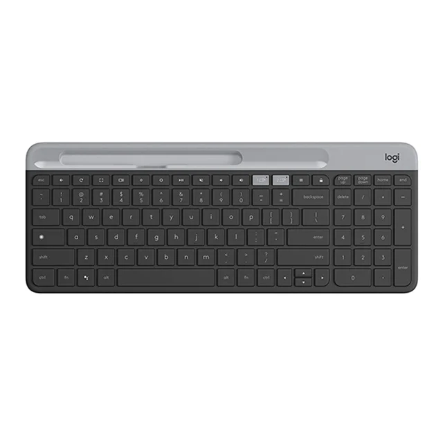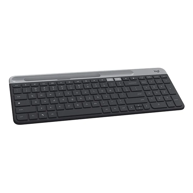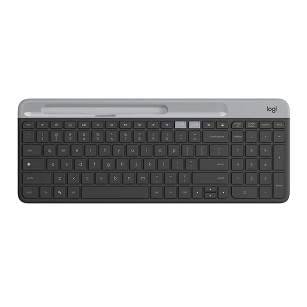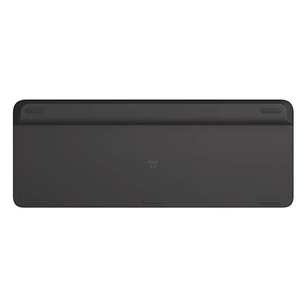 کیبورد بی سیم لاجیتک مدل K580 در نوار بالای آن یک قسمت یا محفظه وجود دارد که میتوانید گوشی یا تبلت خود را به راحتی در آن قرار دهید. در بالای صفحه کلید ، یک دکمه پاور کوچک میبینید، که میتوانید در صورت عدم استفاده، کیبورد را خاموش کنید. کیبورد بی سیم لاجیتک مدل K580 دارای کلیدهای کم جزئیات، مشابه لپ تاپها و سایر کیبوردهای بی سیم است و بسیار راحت و زیبا به نظر میرسد. کیبورد بی سیم لاجیتک مدل K580 قابلیت حمل عالی دارد و تجربه تایپ واقعی را برای شما فراهم میکند. صفحه کلید برای سیستم عامل های Android ، Windows ، Mac و iOS کار می کند . پس از ایجاد ارتباط بین دو دستگاه ، می توانید با فشردن F11 یا F12 از هر کدام دستگاه استفاده کنید. بسته به اینکه از کدام گزینه اتصال استفاده میکنید ، کلیدهای F11 یا F12 با یک چراغ LED سفید چشمک زن نشان میدهد که از چه عملکردی استفاده میکنید.