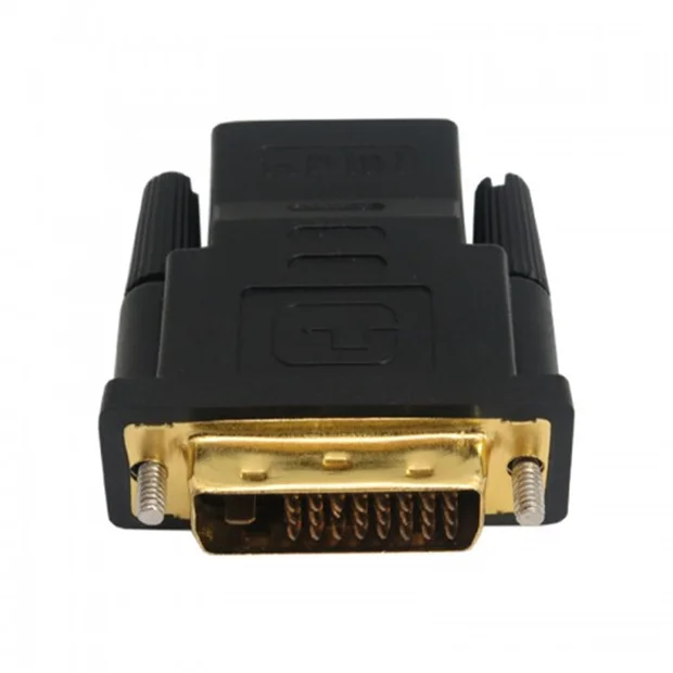 تبدیل DVI نری به HDMI مادگی برای استفاده از پورت DVI کارت گرافیک به پورت HDMI به کار می رود. مثلا میتوان از پورت کارت گرافیک به تلویزیون با پورت HDMI متصل نمود.این تبدیل با سر سوکت طلایی با بهترین کیفیت ساخت می باشد.
