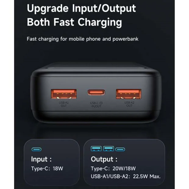 USB-A2: 4.5V/5A , 5V/4.5A , 5V/3A , 9V/2A , 12V/1.5A , 22.5W Max