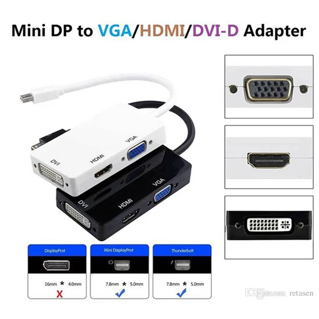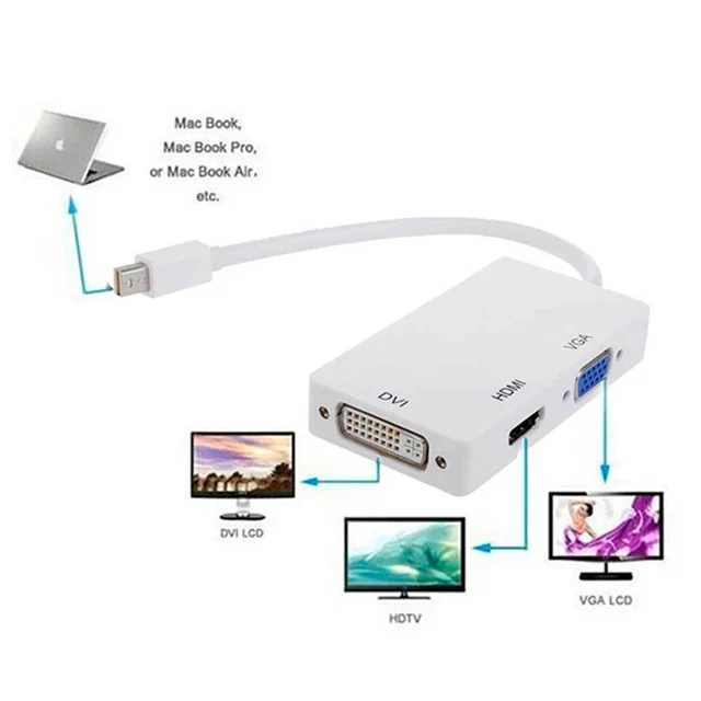 - تبدیل مینی دیسپلی اپل به کمبو میتواند مینی دیسپلی پورت را به DVI یا VGA و یا HDMI تبدیل کند.