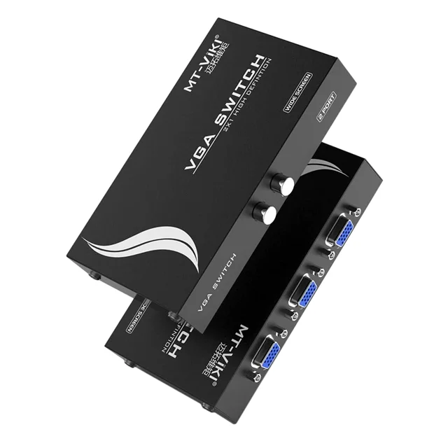 دارای 2 درگاه VGA دارای بدنه فلزی نصب سریع و آسان 2 پورت ورودی و یک پورت خروجی صدا و تصویر پشتیبانی تا وضوح تصویر 1600×1200 قابلیت سازگاری با بیش از 95 درصد مانیتورها