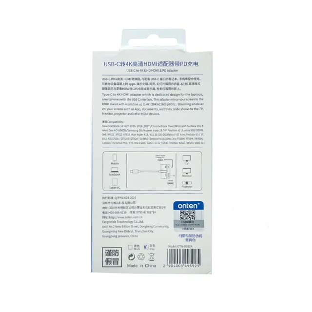 Onten 9592A USB-C to HDMI (4K 30HZ) and smart PD Charging