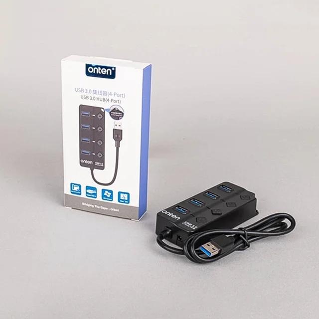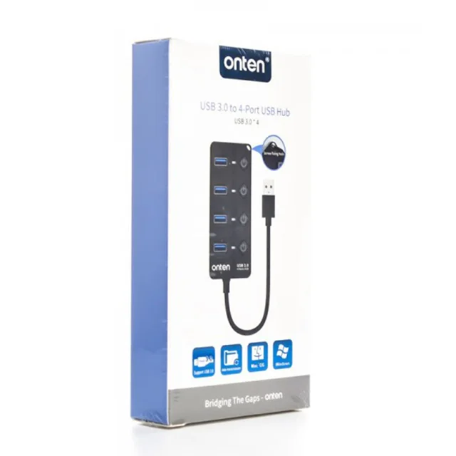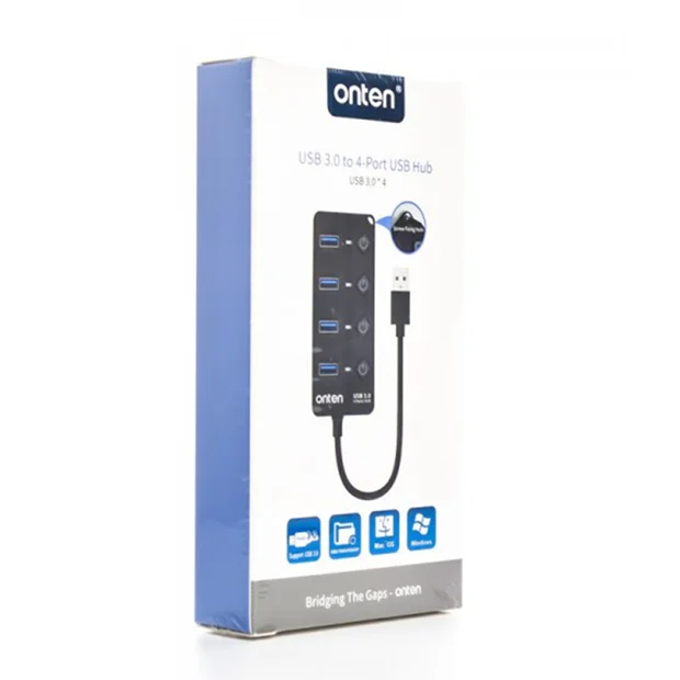 هاب USB 3.0 اونتن مدل OTN-5301 یک هاب 4 پورت USB3.0 است با کلید فعال/غیر فعال کردن اختصاصی برای هر درگاه. می توان از آن برای شارژ تلفنهای همراه ، تبلتها و سایر دستگاهها استفاده کرد. همچنین میتواند برای دستگاههای خارجی با اتصالات USB مانند صفحه کلید، موس، درایو فلش، کارت خوان و غیره استفاده شود. از همهی سیستم عامل ها پشتیبانی میکند.