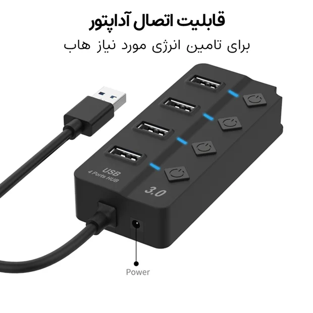 قابلیت اتصال اداپتور برای تامین انرژی مورد نیاز هاب
