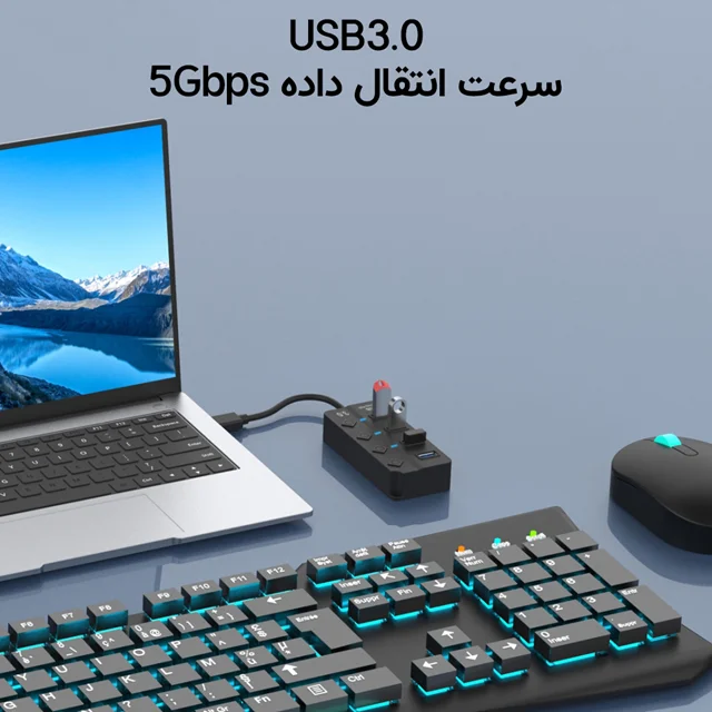 ابعاد: 230*20*8 میلی متر | جنس: PVC | وزن: 200 گرم | تعداد درگاه: 4 عدد | پورتها: USB 3.0 | رابط: 3.0 USB | کلید فعال/غیر فعال کردن اختصاصی برای هر درگاه | سرعت انتقال داده: 5Gbps