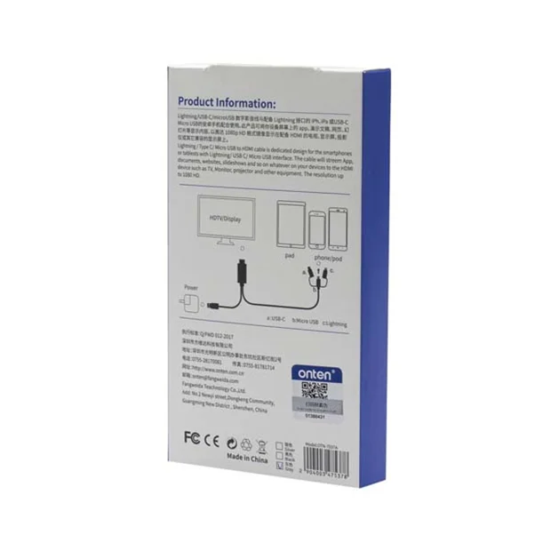 Onten OTN-7537A Lightning /microUSB/USB-C to HDMI 1.8m