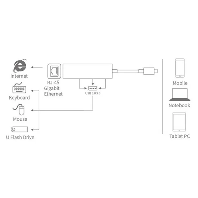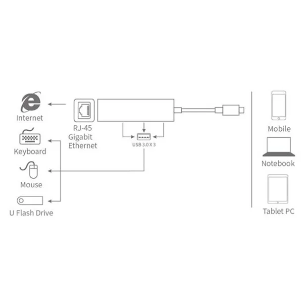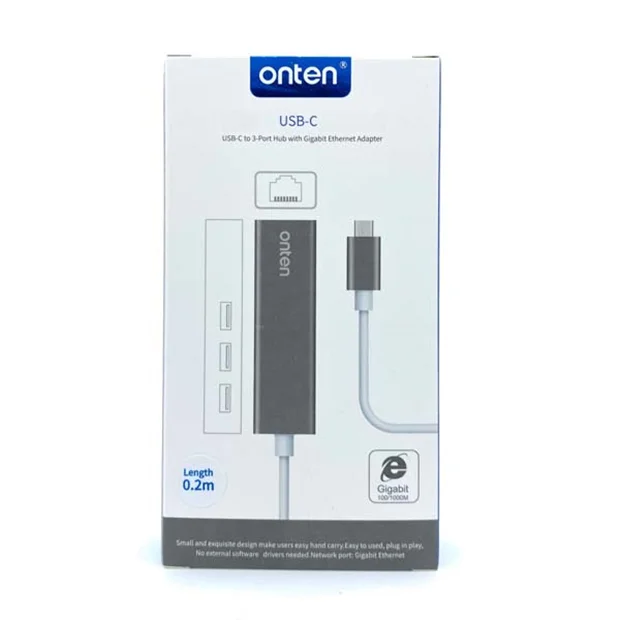 Onten OTN-9593 Type-C to 3 port USB hub with gigabit LAN