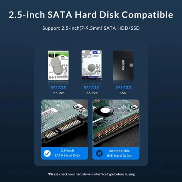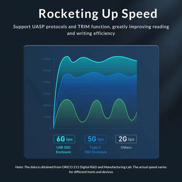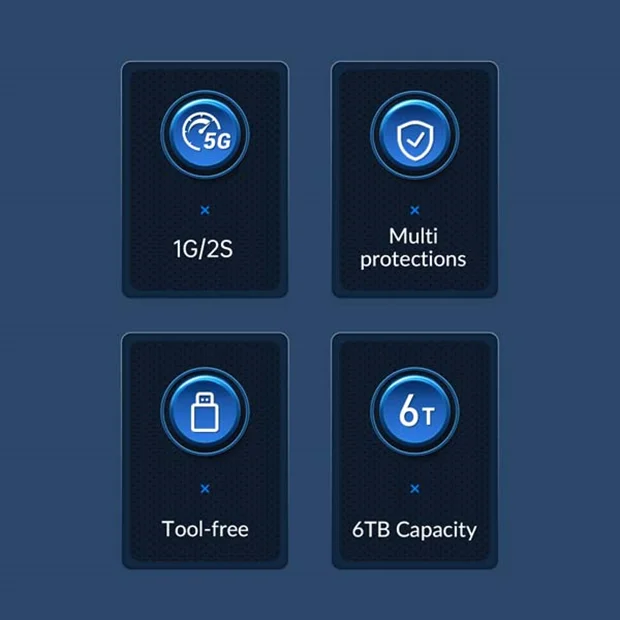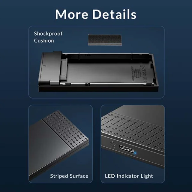 - پشتیبانی از هارددیسکهای تا 6 ترابایت: میتوانید از هارددیسکهای 2.5 اینچی با ظرفیت تا 6 ترابایت در این قاب استفاده کنید.