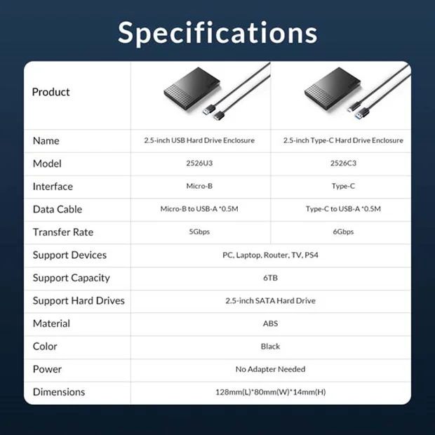 Orico 2526U3-V1 2.5 inch USB 3.0 External HDD Enclosure