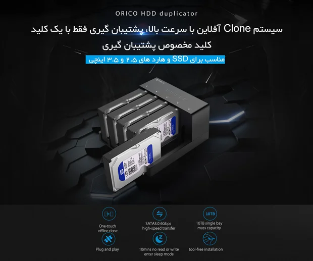 باکس هارد 2.5/3.5 اینچی با قابلیت تکثیر اوریکو فقط از هارد درایو های 2.5 و 3.5 اینچی با رابط اتصال SATA پشتیبانی میکند.
