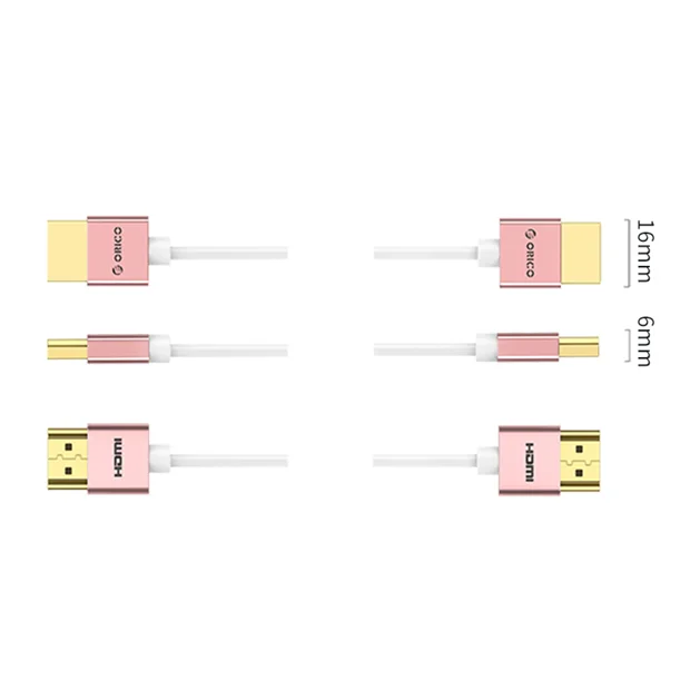کابل HDMI اوریکو مدل HD205 طول 2 متر بر خلاف باقی کابلهای HDMI که ظاهری ضمخت و معمولا مشکی رنگ هستند طراحی جذابی دارد. این کابل ترکیبی از رنگهای روشن است. این مدل ترکیبی از دو رنگ سفید و رزگلد است. اوریکو برای این مدل از نسخه HDMI 2.0 استفاده کرده است.