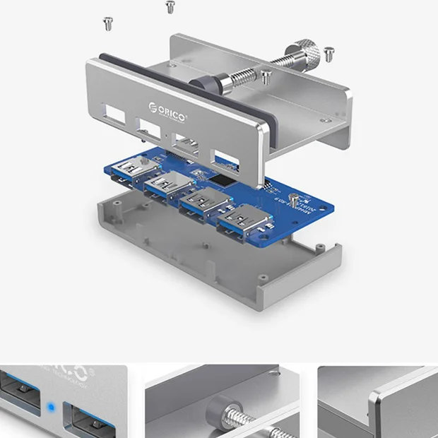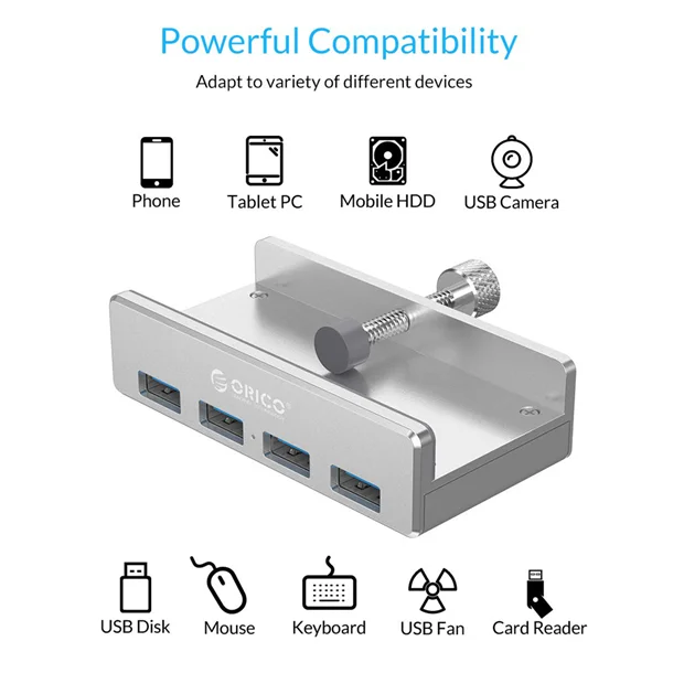 4 عدد پورت USB 3.0 در این هاب تعبیه شده است. توسط این محصول اوریکو دیگر محدودیتی برای پورتهای USB 3.0 ندارید و میتوانید از یک پورت به 4 پورت USB 3.0 دسترسی پیدا کنید. یکی از ویژگی های چشمگیر این هاب، برخورداری از گیرهای است که بهره مندی از این محصول را در هر نوع سطحی آسان میکند. توسط این گیره در میز کار خود آزادی عمل بیشتری خواهید داشت. |