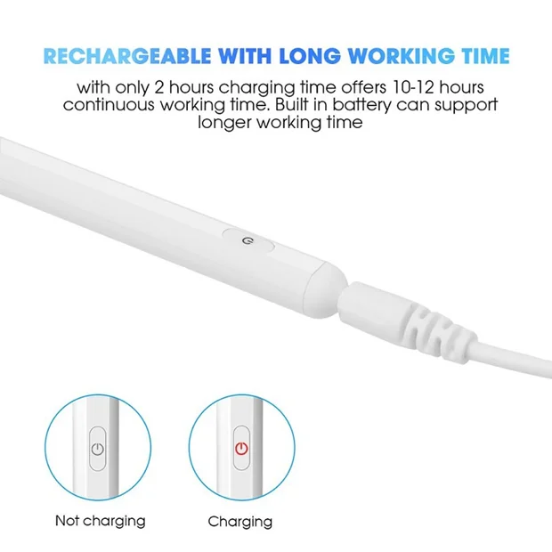 قلم اکتیو P3 یک وسیله جانبی کاملا ضروری برای نوت برداری، ترسیم و طراحی، و ابزاری کارآمد در کلاس ها و آزمون های آنلاین میباشد. بدنه و نوک این قلم از جنس POM کیفیت مشابه قلم اپل میباشد که صفحه نمایش دستگاه را در برابر خط و خش حفظ میکند. درون بدنه این قلم از یک آهنربا قوی استفاده شده است و شما میتوانید این قلم را به حاشیه تبلت خود چسبانده ودیگر نگران گم شدن آن نباشید. بر روی قسمت بالای این قلم کلید روشن و خاموش قلم قرار گرفته شده است که با فشردن آن LED سفید رنگ نشان دهنده فعال بودن قلم روشن میشود.
