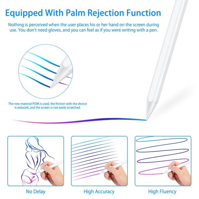 قلم اکتیو P5 یک وسیله جانبی کاملا ضروری برای نوت برداری، ترسیم و طراحی، و ابزاری کارآمد در کلاس ها و آزمون های آنلاین، قابل استفاده فقط بر روی آیپد های اپل مدل 2018-2021، میباشد. قابلیت عدم تشخیص دست در حین کار این قلم را به گزینه ای مناسب برای طراحی و نقاشی تبدیل میکند. به این معنی که در هنگام کار با این قلم، صفحه نمایش آیپد لمس های ناشی از تماس دست را تشخیص نمیدهد در نتیجه شما میتوانید با خیال راحت و بدون مزاحمت به طراحی بپردازید.