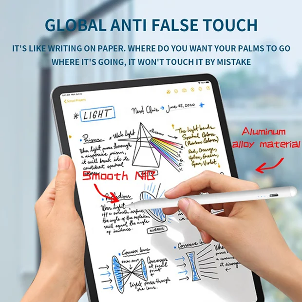 قلم اکتیو P6 Pro یک وسیله جانبی کاملا ضروری برای نوت برداری، ترسیم و طراحی، و ابزاری کارآمد در کلاس ها و آزمون های آنلاین، قابل استفاده فقط بر روی آیپد های اپل مدل 2018-2021، میباشد. قابلیت عدم تشخیص دست در حین کار این قلم را به گزینه ای مناسب برای طراحی و نقاشی تبدیل میکند. به این معنی که در هنگام کار با این قلم، صفحه نمایش آیپد لمس های ناشی از تماس دست را تشخیص نمیدهد در نتیجه شما میتوانید با خیال راحت و بدون مزاحمت به طراحی بپردازید. همچنین این قلم قابلیت تشخیص زاویه دست را دارد و با تغییر زاویه دست شما میتوانید اندازه برس قلم را تغییر دهید.