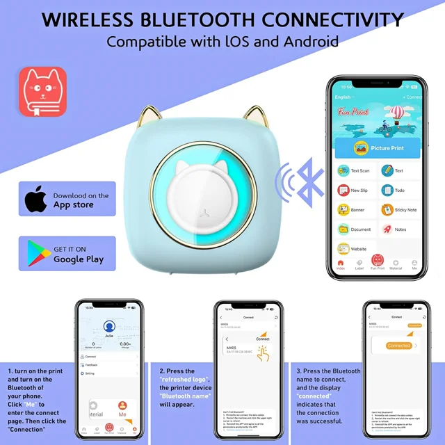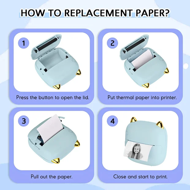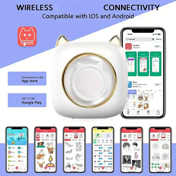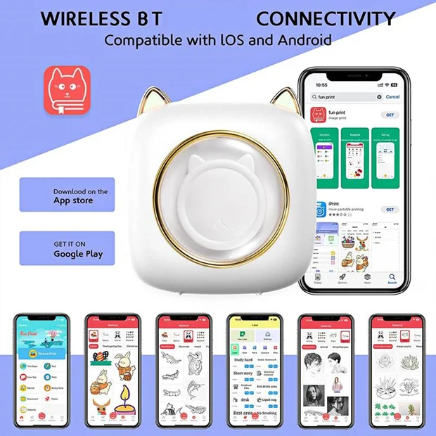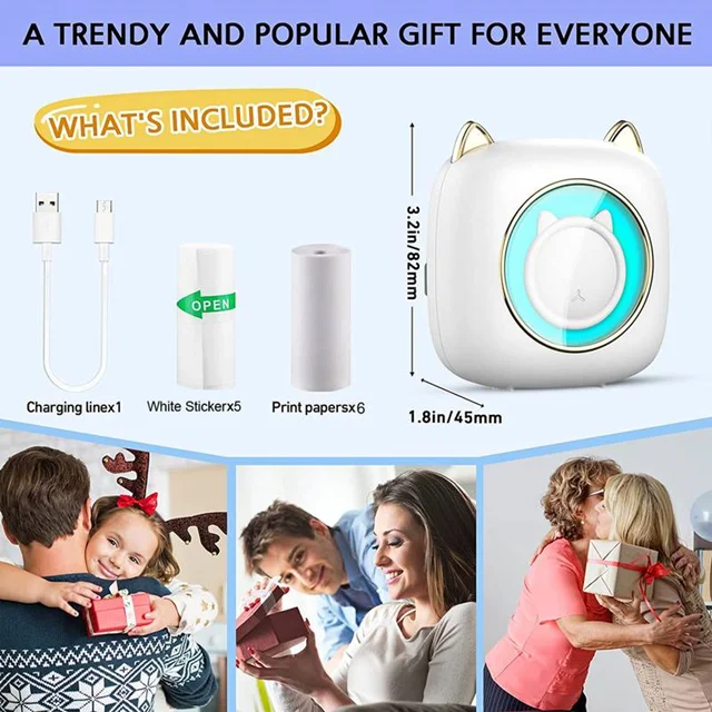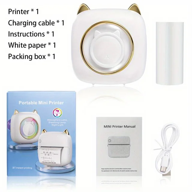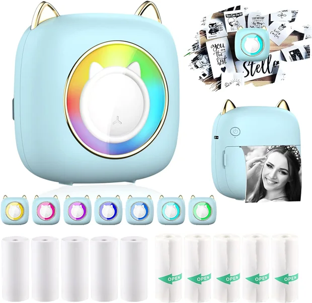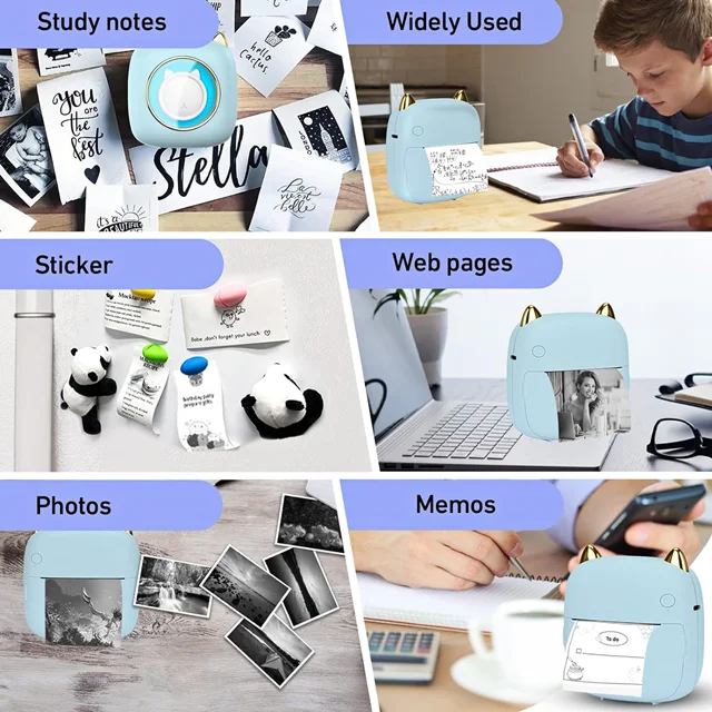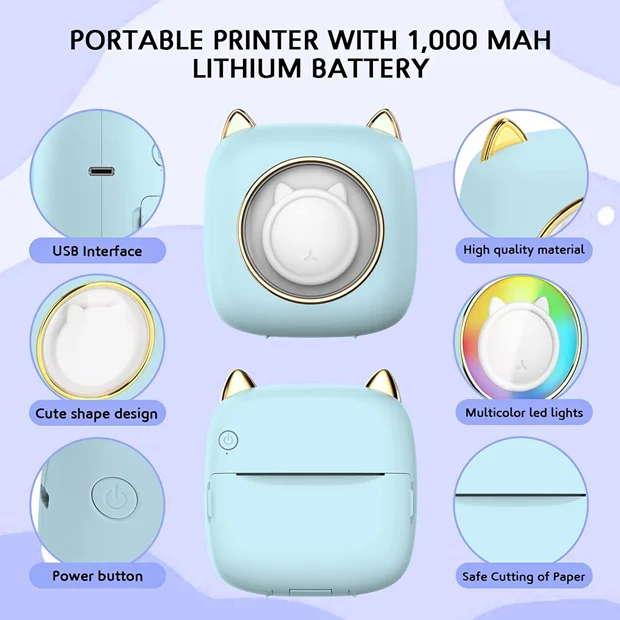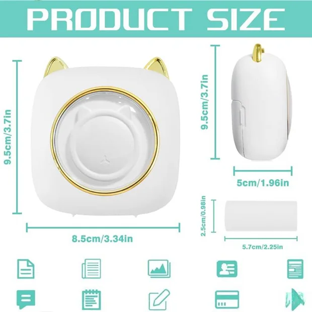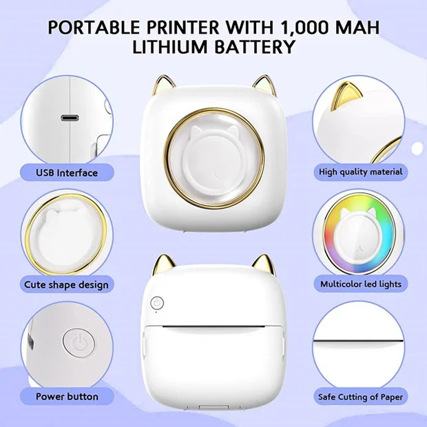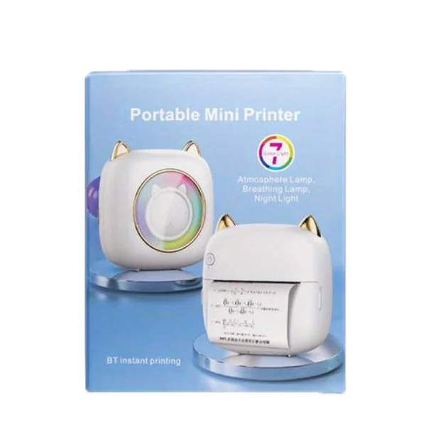 مینی چاپگر جیبی: ظاهری ساده، با الگوی گربه زیبا، کوچکتر از تلفن همراه است، میتوان آن را در جیب یا کیف خود قرار داد، به راحتی میتوان آن را در هر جایی با خود حمل کرد.