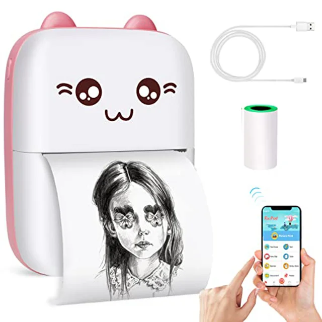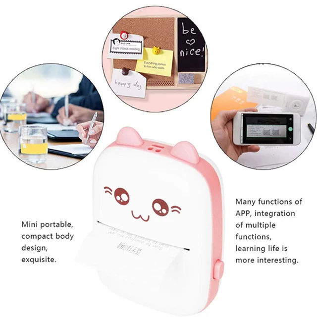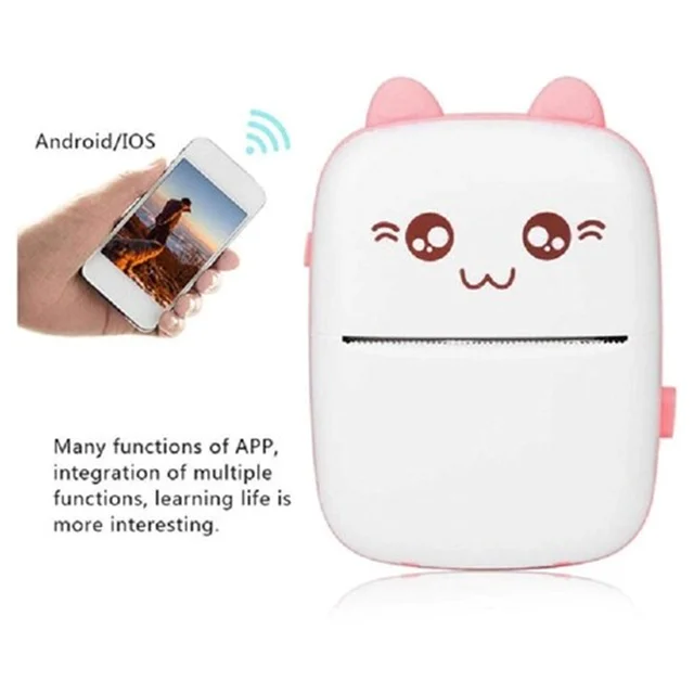 مینی چاپگر جیبی: ظاهری ساده، با الگوی گربه زیبا، کوچکتر از تلفن همراه است، میتوان آن را در جیب یا کیف خود قرار داد، به راحتی میتوان آن را در هر جایی با خود حمل کرد.