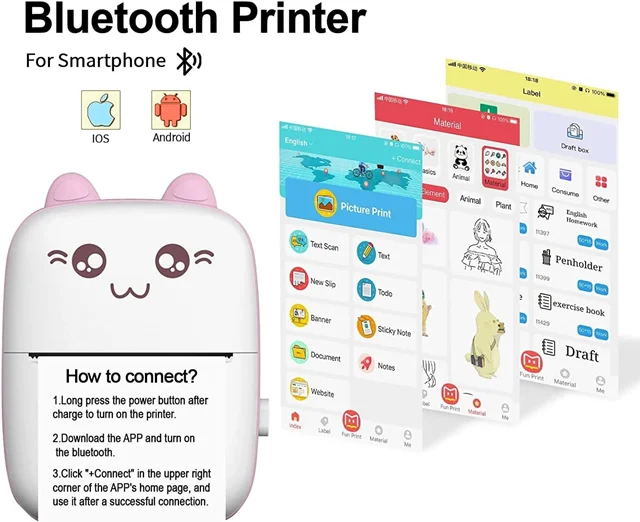 مناسب برای مطالعه، اداره، منزل و مسافرت، بهترین هدیه برای دانش آموزان، کارکنان اداری، دوستان، خانواده است. اتصال بیسیم: پشتیبانی از اتصال بیسیم BT با اپلیکیشن هوشمند ( Fun Print ) ، سازگار با Android و iOS میتوانید در هر زمان و هر مکان چاپ کنید.