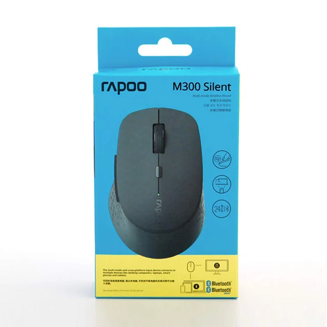 همچنین ماوس رپو (M300 Silent) دارای ویژگی هایی همچون بهره مندی از تعداد 6 عدد کلید و برد آن تا محدوده 10 متر، قابلیت تجهیز به درگاه ارتباطی بلوتوث، نمایشگر وضعیت باتری، طراحی ساختار ظاهری ارگونومیک جهت جلوگیری از خستگی کاربر و در انتها سازگاری با معتبرترین و بروزترین سیستم های عامل موجود در دنیای فناوری اطلاعات همچون (Windows 10,Windows 8,Windows 7,Mac,Xp) می باشد.