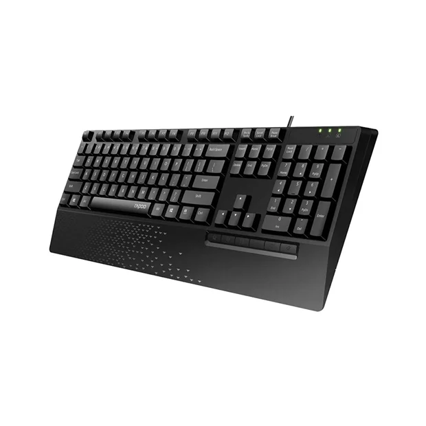 برای حفظ آسایش شما در حین کار با این صفحه کلید کامپیوتر، یک استراحتگاه مچ دست به بدنه آن پیوند خورده است که اختلاف ارتفاع کیبورد با سطح میز را برایتان برطرف می کند. طرح های گرافیکی حکاکی شده روی کیبورد کامپیوتر رپو مدل NX2000، هم ظاهر دستگاه را از سادگی بیش از حد خارج می کند و هم جلوی چسبیدن آن به مچ دست و عرق کردن را می گیرد.