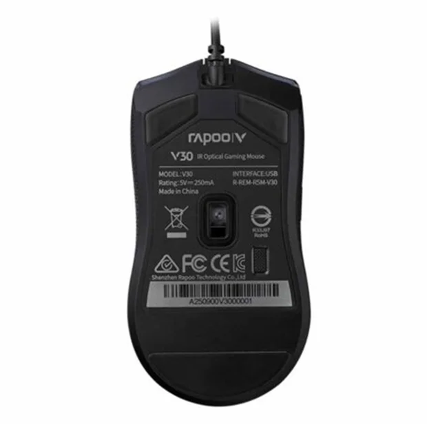 شرکت رپو توانسته در سال های اخیر با تولیدات محصولات مخصوص بازی بسیاری از کاربران را به سمت و سوی خود بکشاند و طرفداران زیادی را به خود جلب کرده است. ماوس رپو مدل V30 یکی از تولیدهای باکیفیت و گیمینگ می باشد که می تواند از طریق پورت USB و کابل به سیستم شما متصل شود. Rapoo V30 Mouse دارای 3 دکمه است که توانسته بسیاری از کارها را سریعتر از برخی ماوس ها انجام دهد. سنسور استفاده شده در رپو مدل V30 از نوع اپتیکال بوده است. DPI در نظر گرفته شده در Rapoo V30 حداکثر 5000DPI است که توانسته سرعت بالایی را در عین کار با کامپیوتر داشته باشد. بدنه ماوس V30 از پلاستیک باکیفیت ساخته شده که می تواند در مقابل صدمات و ضربه مقاومت خوبی را از خود نشان دهد. کابل بکار رفته در ماوس رپو V30 از جنس الیاف است که می تواند از گره خوردن و پارگی جلوگیری کند.