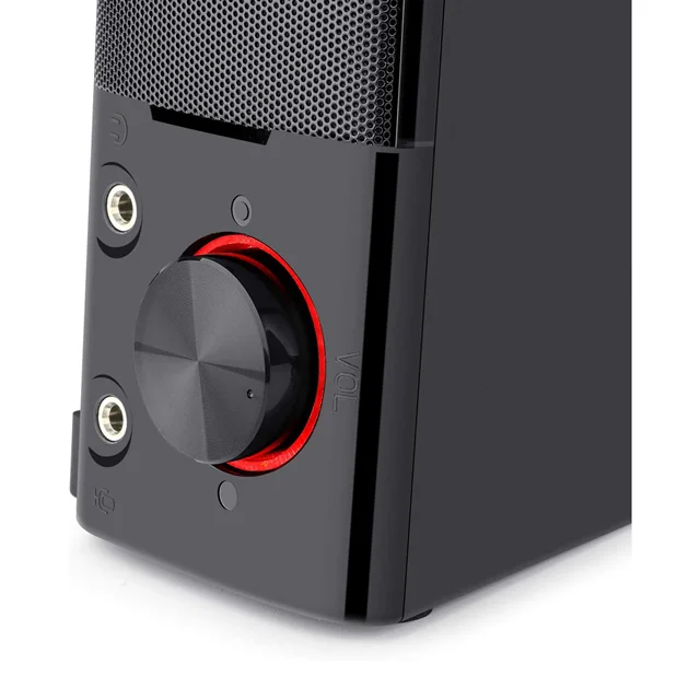 این اسیپیکر با کابل 3.5 میلیمتری و به وسلیه سوکت USB به سیستم شما متصل می شود که می تواند یک مهمانی را برای شما ساپورت کند، این اسپیکر به کامپیوتر، تلوزیون و لپ تاپ شخصی شما به راحتی متصل می شود و با حداکثر طول کابل 31 اینچی (80 سانتیمتری) بین دو بلندگو می توانید آن را با فاصله زیاد از دستگاهتان جا به جا کنید.