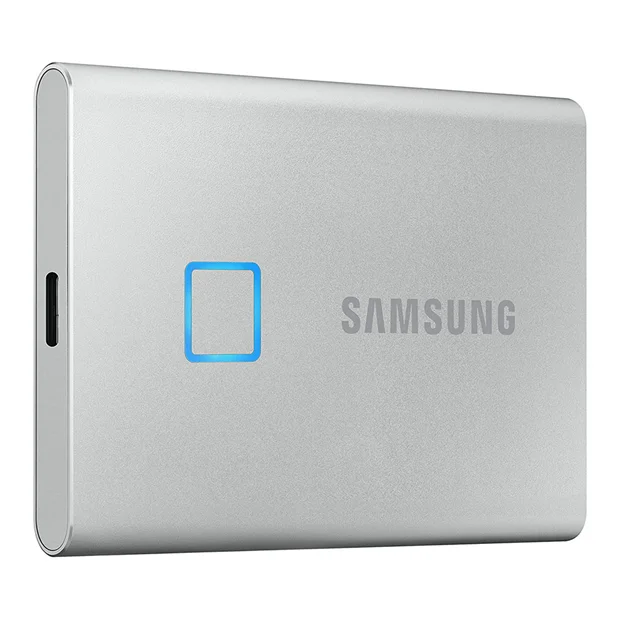 طراحی زیبای اس اس دی T7 Touch همه را مجذوب خود میکند. این SSD در دو رنگ نقرهای و مشکی با سه ظرفیت 500 گیگ، ا ترابایت و 2 ترابایت ساخته شده است که متناسب با سلیقه و نیازتان به راحتی میتوانید یکی از آنها را انتخاب کنید. علاوه بر این، یک مربع کوچک بر روی آن طراحی شده که هم حسگر اثر انگشت و هم دارای نور LED است که در هنگام کار روشن شده و زیبایی دلنوازی را به آن بخشیده است.