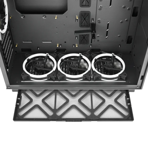کیس PURE STEEL RGB کاملاً مناسب نصب مادربردهایی تا سایز E-ATX است و شما میتوانید به آسانی رادیاتورهایی با اندازه 360 میلیمتری را در این کیس جای دهید و یا به جای آن از 6 فن دیگر استفاده کنید. همچنین میتوانید کارت گرافیکهای با ارتفاع 42 سانتیمتر، کولرهای پردازنده 16 سانتیمتری و منبع تغذیه تا ارتفاع 29.5 سانتیمتر را در این کیس نصب کنید و به علاوه میتوانید 3 درایو 3.5 اینچی و یا 5 درایو 2.5 اینچی را به راحتی در این کیس جای دهید.