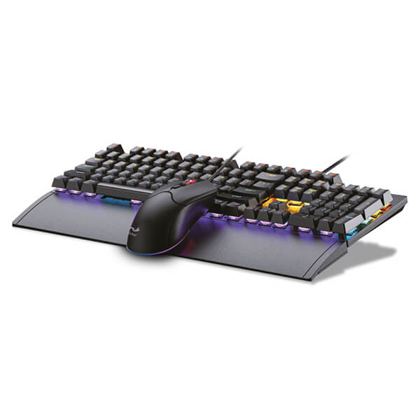 ماوس این مجموعه نیز با ابعاد ۳۸×۶۵×۱۲۷ میلیمتر و وزن ۱۲۸ گرم طراحی شده تا کنترل کامل و حرکتی روان ارائه دهد. وجود وزنه داخلی باعث پایداری بیشتر ماوس روی سطح شده و حرکت دقیق و بدون لغزش در بازیها و طراحی گرافیکی را ممکن میسازد. بدنه ماوس از پلاستیک ABS مقاوم ساخته شده و کلیدهای آن با طراحی ارگونومیک، استفاده طولانیمدت بدون خستگی را تضمین می کند.