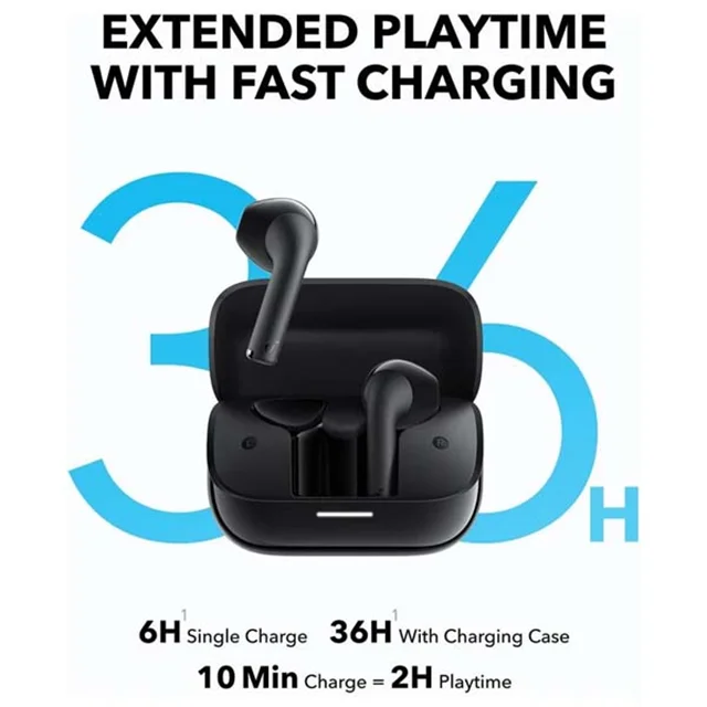 باتری این ایرفون تا ۹ ساعت استفاده مداوم را با یک بار شارژ فراهم میکند و به کمک کیس شارژ، این زمان به ۳۶ ساعت میرسد. همچنین قابلیت شارژ سریع باعث میشود تنها با ۱۰ دقیقه شارژ، بتوانید حدود ۲ ساعت موسیقی گوش دهید.