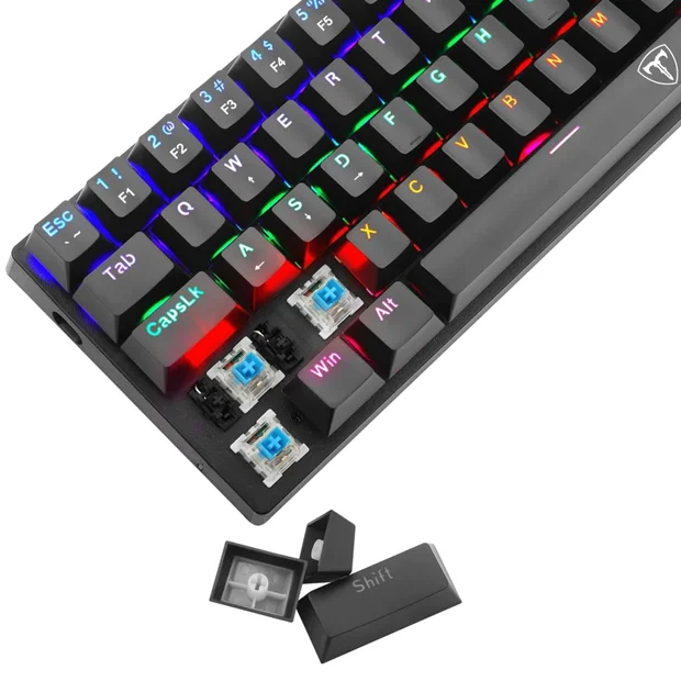 این کیبورد گیمینگ با حالات نور پردازی مختلف و 61 کلید با قابلیت فشردن تمام کلید ها همزمان و کابل روکش دار 1.5 متری و اتصال USB یک کیبورد مجهز را برای شما به ارمغان آورده است.