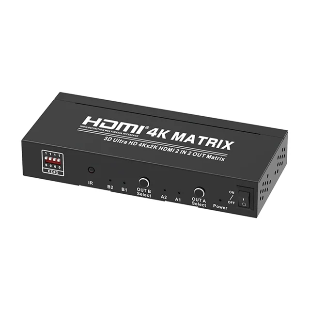 با وجود LEDهای موجود در پنل جلویی دستگاه کاربر در لحظه از منبع انتخاب شده مطلع و بدون خطا انتخاب میکند. از مزایای دیگر این مدل نسبت به سایر مدلهای مشابه، پشتیبانی از رزولوشن 4K و همچنین تصاویر سهبعدی است. ماتریکس 2 در 2 HDMI تی سی تی مدل TC-HMX-22 با امکانات بیان شده برای اتاقهای کنترل، کنفرانسها، اتاق مانیتورینگ، مراکز آموزشی چند رسانهای، مصارف خانگی و ... بسیار مناسب است.
