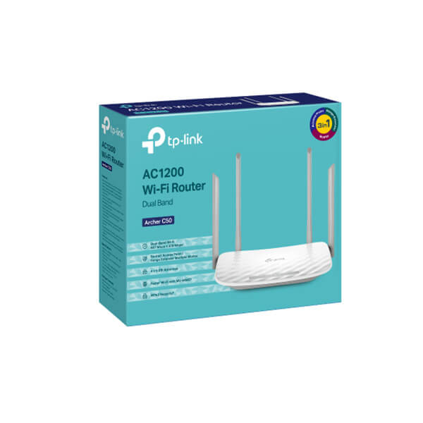 Archer C50 از فناوری وایفای دو بانده با استاندارد AC1200 پشتیبانی میکند و سرعت 300 مگابیت بر ثانیه در باند 2.4 گیگاهرتز و 867 مگابیت بر ثانیه در باند 5 گیگاهرتز را ارائه میدهد. این امکان به کاربران اجازه میدهد که همزمان چندین دستگاه را متصل کنند و فعالیتهای مختلف مانند مرور وب، استریم ویدیوهای HD و بازیهای آنلاین را بدون قطعی و تأخیر تجربه کنند.