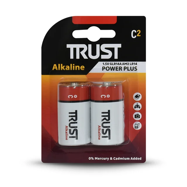باتری تراست مدل آلکالاین سایز متوسط C بسته 2 عددی