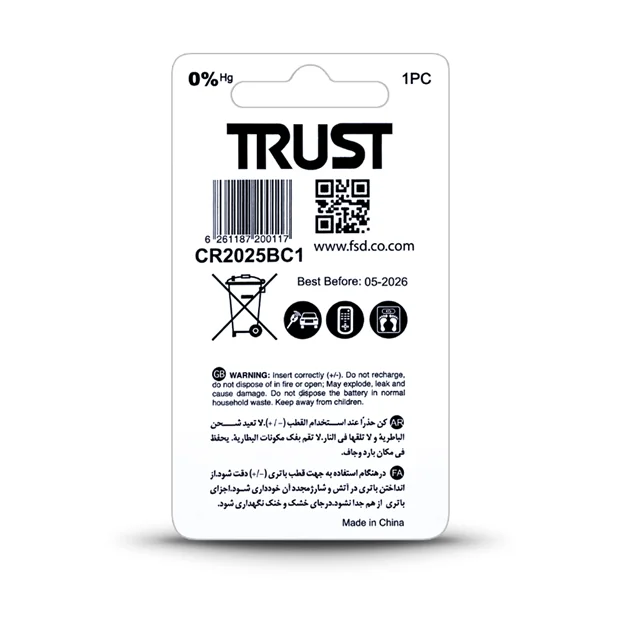 ولتاژ 3 ولت | ظرفیت 150 میلی آمپر | قابلیت شارژ ندارد | ماندگاری 5 سال