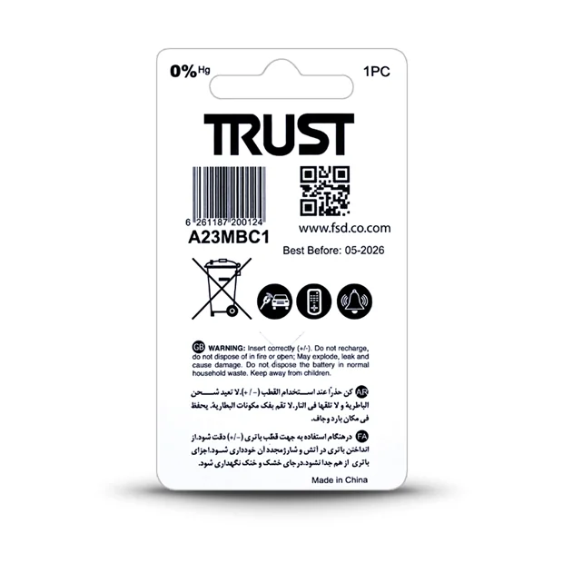 سته پنج عددی | ولتاژ 12 ولت | ظرفیت 50 میلی آمپر | تکنولوژی ساخت آلکالاین | قابلیت شارژ مجدد ندارد