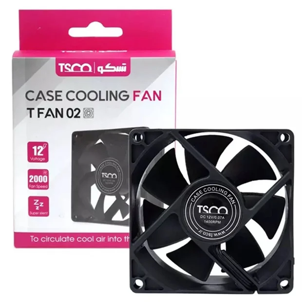 فن کیس تسکو مدل TFan 02 یکی از محصولات ایرانی است که توسط شرکت TSCO طراحی شده است. T Fan 02 در واقع یک خنک کننده 8*8 است که عملکرد مناسب به همراه سطح سر و صدای پایین را به همراه دارد. با خرید فن کیس تسکو می توانید دمای داخلی قطعات را کاهش دهید و طول عمر آنها را افزایش دهید. این محصول از سرعت 2000 دور در دقیقه و ولتاژ 12 ولت استفاده می کند.