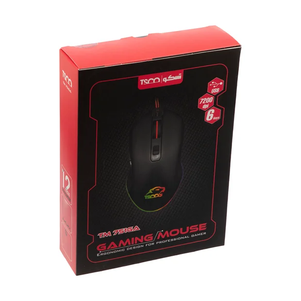 این ماوس دارای ارگونومی خاصی است که دست در استفاده طولانی مدت خسته نمیشود. یکی از ویژگیهای آن داشتن دقت 7200 DPI است. دقت این ماوس 7200 DPI است و میتواند بهسرعت بازی کردن شما بیافزاید. ماوس مخصوص بازی تسکو مدل TM 751GA دارای سیم است و دیگر شما نگران تمام شدن باتری یا شارژ در وسط بازی کردن خود نیستید.