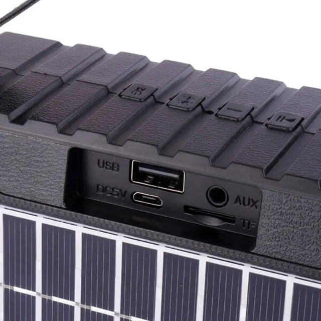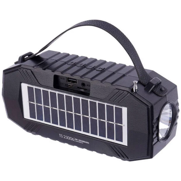 اسپیکر قابل حمل مناسب کمپینگ, 5 وات, BT5.0, TF, AUX, USB, قابلیت تماس, رادیو, قابلیت TWS, باتری 1200 میلی آمپر ساعت, با پنل خورشیدی، چراغ قوه