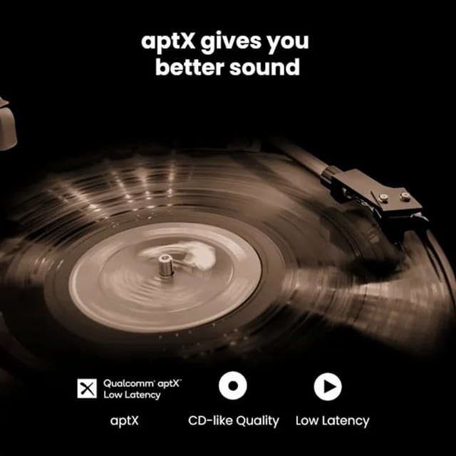 - این محصول دارای کدک داخلی aptX هست که تأخیر را کاهش میدهد و سرعت انتقال صدا را بهبود می بخشد؛ در نتیجه یک تجربه کاربری هماهنگ و با کیفیت بالا ایجاد می کند. با تاخیر کم aptX می توانید از آزادی بی سیم برای برنامه هایی مانند بازی و تماشای فیلم لذت ببرید.