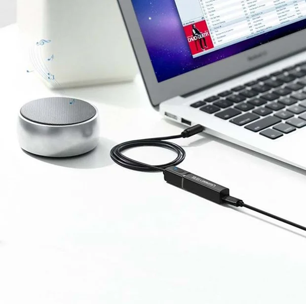 فرستنده بلوتوث یوگرین با پشتیبانی از کدک APTX، کیفیت صدای دستگاهها و ارتباط بلوتوثی را بهبود میبخشد. این دستگاه از یک فرکانس پاسخدهی 20 هرتز تا 20 کیلوهرتز، نسبت سیگنال به نویز 90 دسیبل و اعوجاج کمتر از 0.1 درصد برخوردار است که صدایی صاف و شفاف تولید میکند. فرستنده بلوتوث یوگرین 40761 CM107 با دستگاههایی که جک 3.5 میلیمتری دارند سازگار است و از نسخه بلوتوث 5.0 بهره میبرد، که تاخیر را به حداقل میرساند و به همگامسازی صدا و تصویر کمک میکند. همچنین، نشانگر LED آبی رنگ وضعیت دستگاه را نشان میدهد.