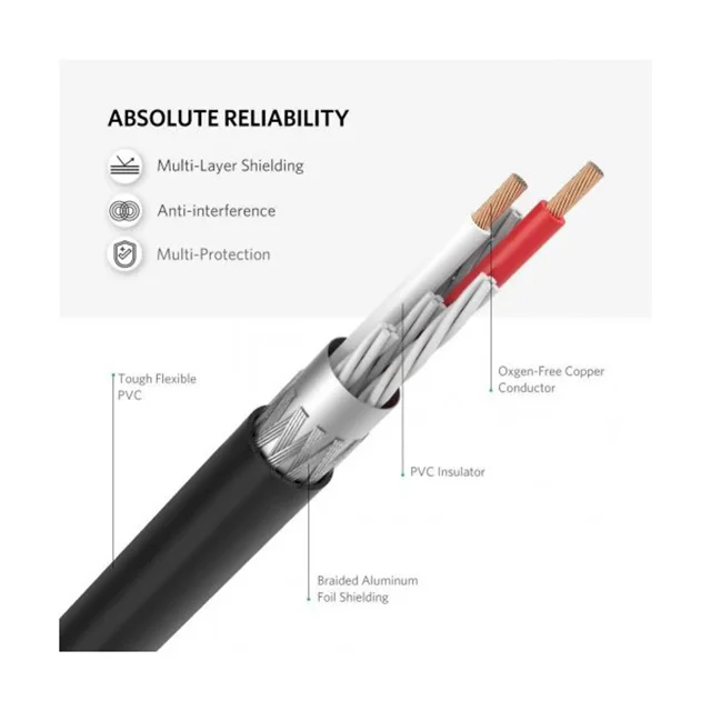 این کابل با استفاده از ترکیب کانکتورهای روکش طلا، هادیهای مسی لخت، محافظ دوگانه و اتصالات فلزی صیقلی با کیفیت بالا، تجربه انتقال صدای استریو با کیفیت عالی را برای شما فراهم میکند. همچنین، این کابل از تداخل فرکانس رادیویی (RFI) و تداخل الکترومغناطیسی (EMI) محافظت میکند و از کیفیت صدا محافظت میکند.
