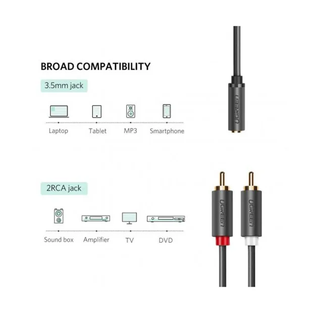 Ugreen AV102-10588 2xRCA male To 3.5mm FeMale Stereo Plug Cable