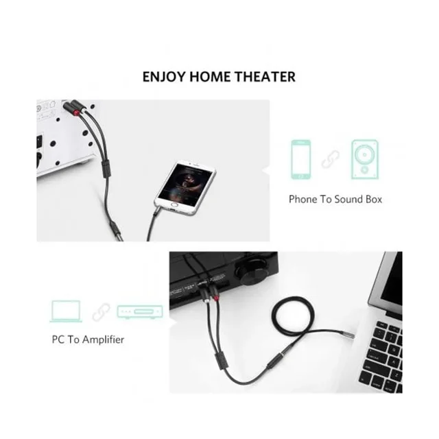 کابل یوگرین مدل AV102 این امکان را فراهم میکند تا دستگاههایی مانند آیفون، آیپد، پخشکننده MP3، موبایل یا لپتاپ با درگاه صوتی 3.5 میلیمتری را به دستگاههایی با ورودی RCA مانند تلویزیون، گیرنده AV، تقویتکننده، پروژکتور، رادیو و سایر دستگاهها متصل کنید.