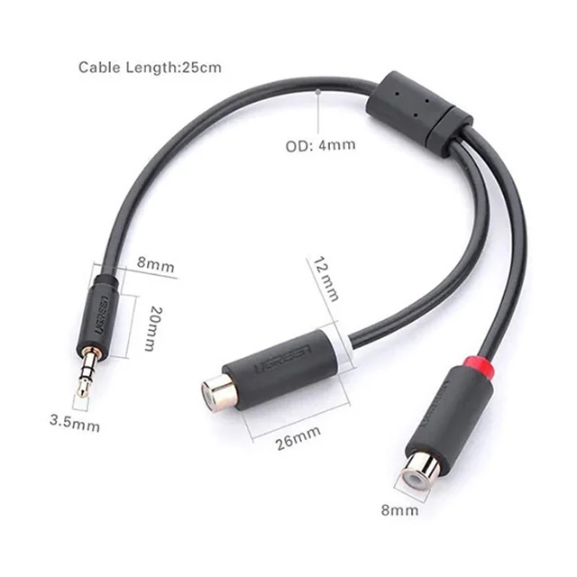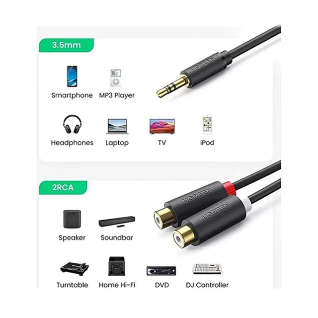 Ugreen AV109- 10547 3.5mm Stereo Plug To 2xRCA Female Plug Converter