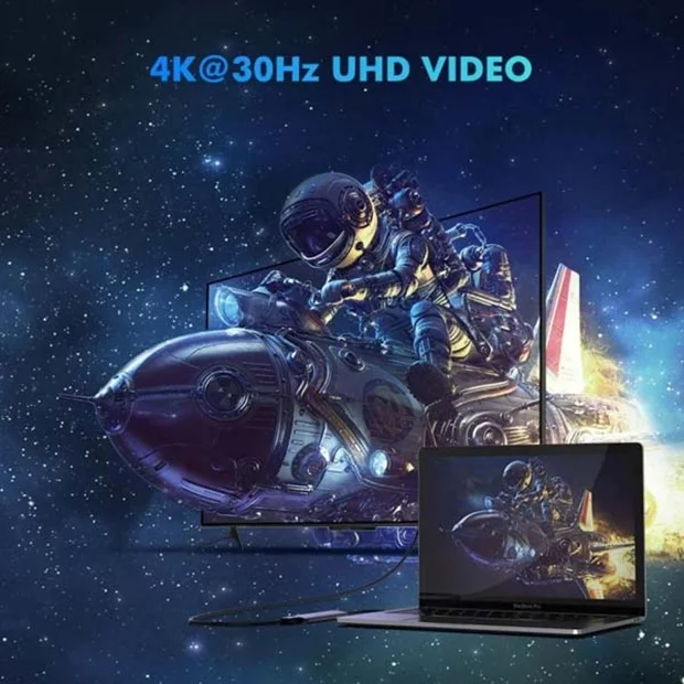 یکی از ویژگیهای برجسته این هاب، پورت HDMI آن است که امکان انتقال تصویر و صدا از دستگاه با پورت USB-C به صفحهنمایشهای کامپیوتر، تلویزیونهای HDTV و پروژکتورهای HD را فراهم میکند. پورت HDMI این دستگاه از رزولوشن 4K با نرخ نوسازی 30 هرتز و HDR پشتیبانی میکند و تجربهای بدون وقفه و با کیفیت عالی را برای شما به ارمغان میآورد.