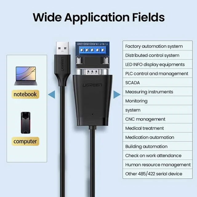 کابل مبدل USB به RS422 / RS485 یوگرین مدل CM253-80434 یک ابزار کاربردی برای تبدیل سیگنالهای USB به سیگنالهای سریال RS-422 و RS-485 است که به کاربران این امکان را میدهد که از دستگاههایی که از این استانداردهای ارتباطی پشتیبانی میکنند، استفاده کنند. این کابل به طور خاص برای کاربردهای صنعتی و ارتباطات طولانیبرد طراحی شده است. در ادامه توضیحات بیشتر درباره ویژگیها و مشخصات این محصول آورده شده است: