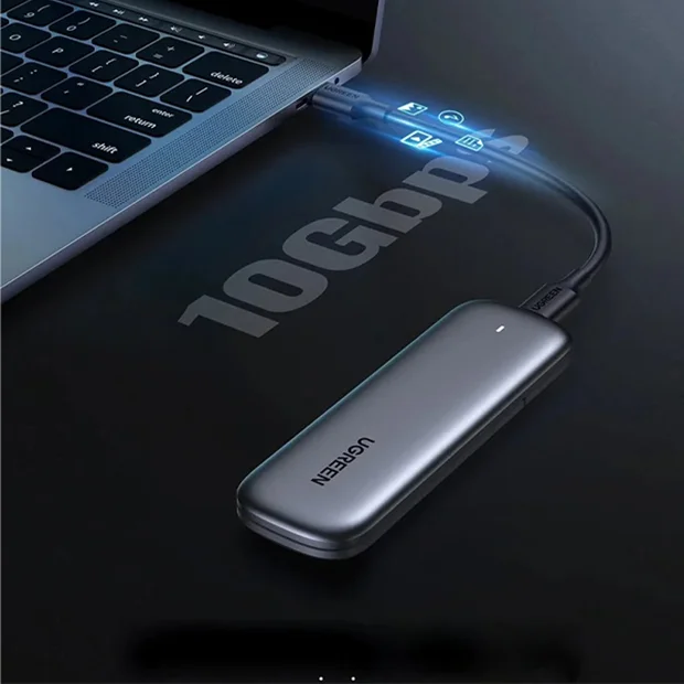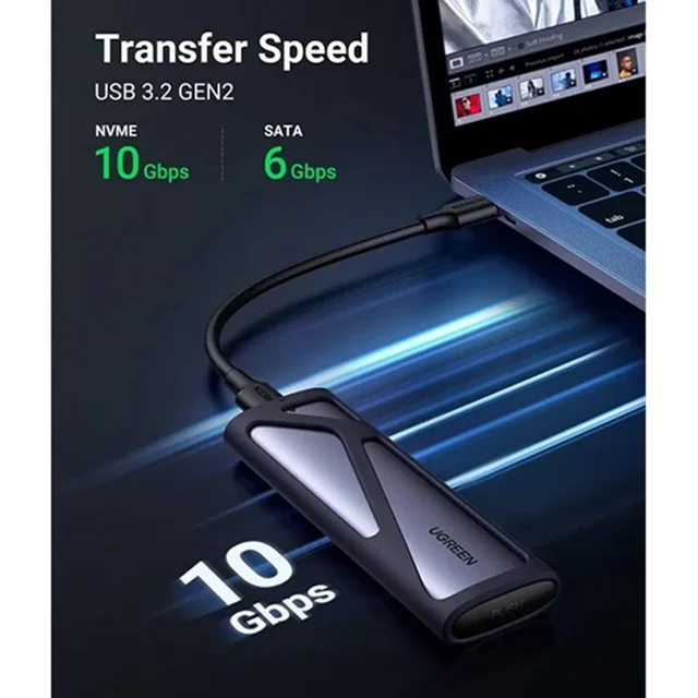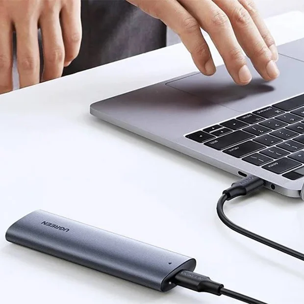 قاب هارد اکسترنال یوگرین مدل CM400-10902 یک گزینه بسیار مناسب برای تبدیل SSDهای M.2 NVMe به هارد اکسترنال پرسرعت است. یوگرین ۱۰۹۰۲ از سایزهای مختلف SSD M.2 از جمله 2230 / 2242 / 2260 / 2280 (NVMe M-Key) پشتیبانی می کند. سرعت انتقال داده آن تا 10 گیگابیت بر ثانیه (معادل ~1,250 مگابایت بر ثانیه، مبتنی بر USB 3.2 Gen 2) است.